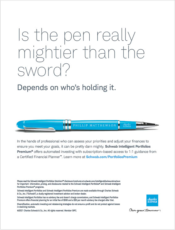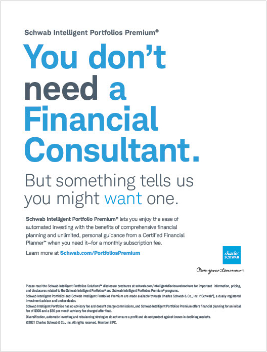 Schwab wanted to elevate their Intelligent Portfolios Premium product — showcasing its blend of personalized planning, automated investing, and access to financial planners. We crafted a concise narrative for print and web that established the need for smarter investing and a tailored approach to financial goals.